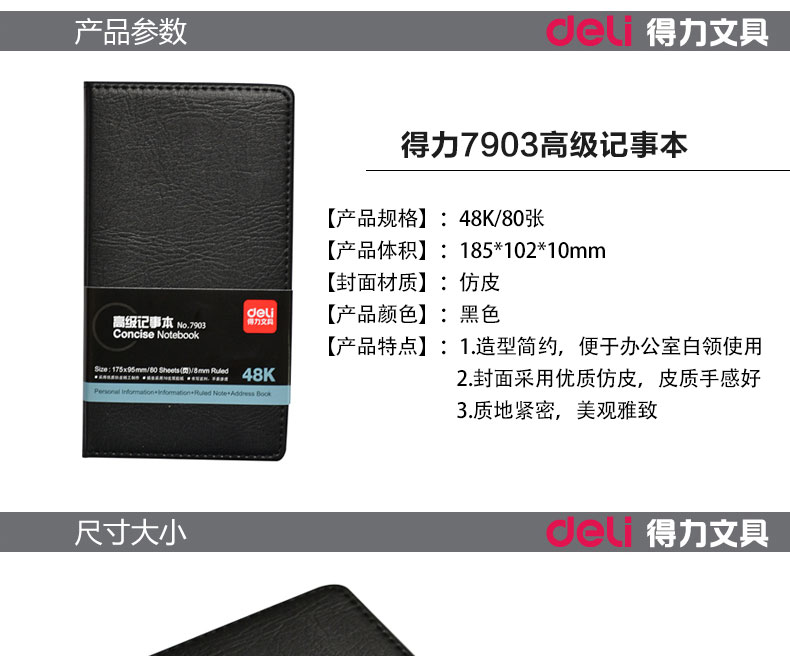 得力7900/7901/7902/7903皮面笔记本 80页皮面日记记事本 皮面本 皮本