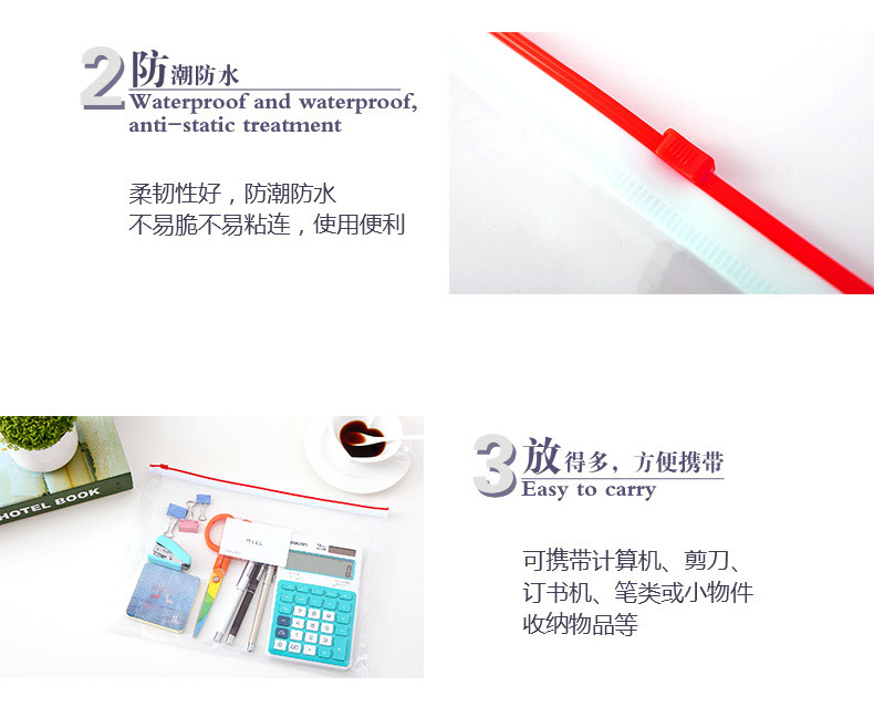 得力5526(混)透明拉链袋A4 文件袋 拉边袋