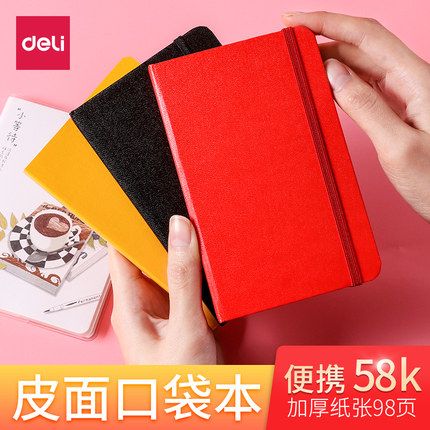 得力3314口袋笔记本96页56K口袋笔记本子记事本迷你便携笔记本 皮面本 皮本