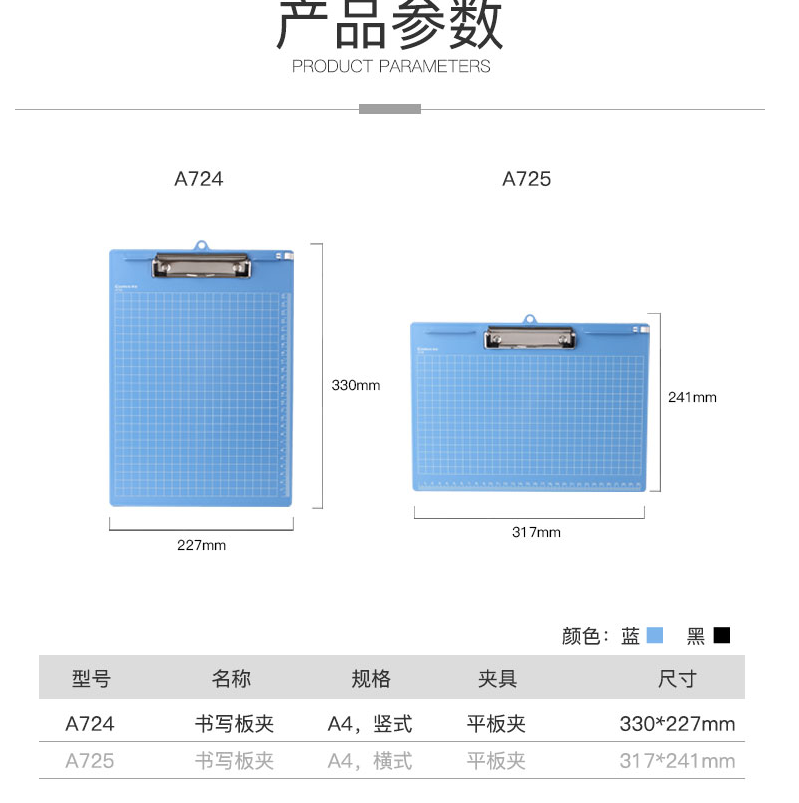 齐心(Comix) A725 A4塑胶夹板 平板夹 横式 蓝色