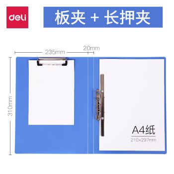 得力长押夹 长押夹+板夹 5309 文件夹 双夹文件夹板夹塑料文具 A4加长夹子办公室 5308长押夹(蓝)(只