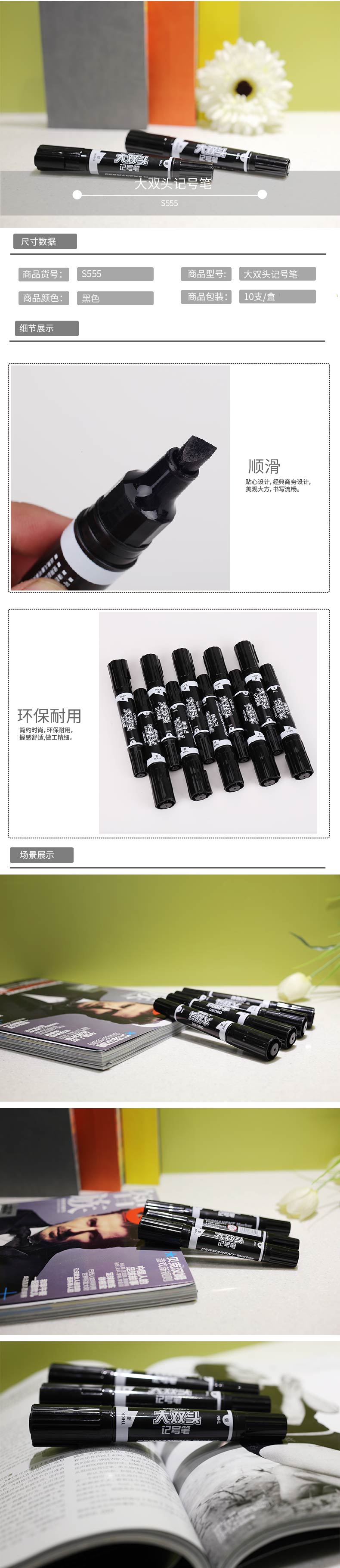 得力S555大双头记号笔 油性记号笔 双头记号笔