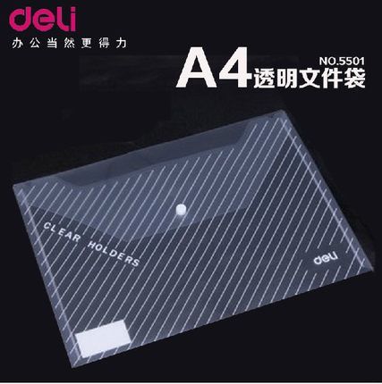 得力(Deli) 5501文件袋 A4透明按扣公文袋 档案袋 资料袋 文件套 纽扣袋