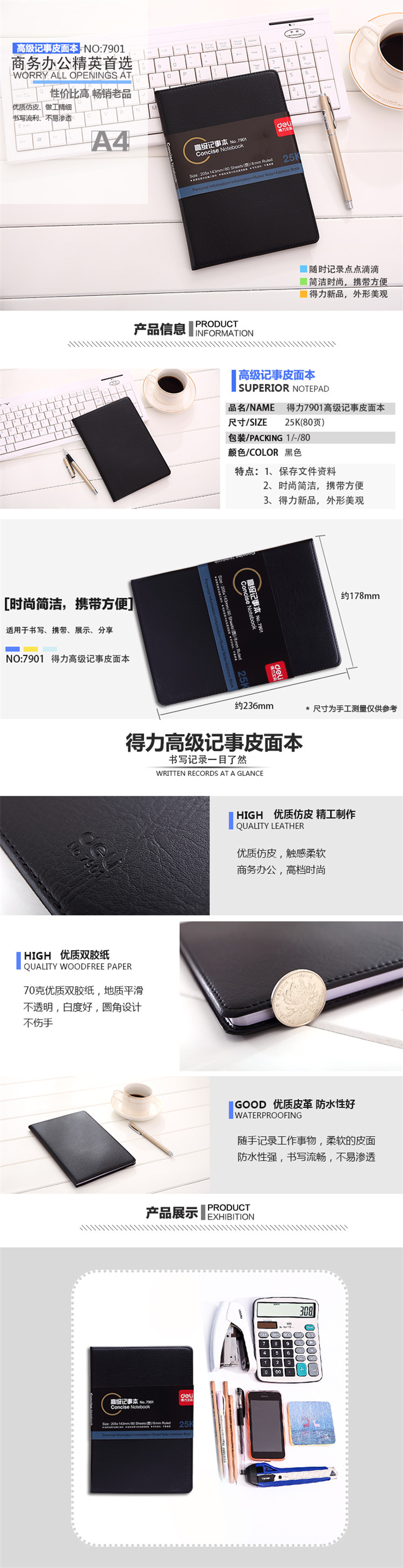得力7901/7900 记事笔 皮面本 25K笔记本 18K笔记本 皮面本 皮本